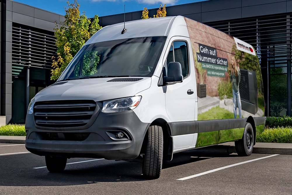 Das nebenstehende Bild ist nur ein Beispiel. Deine Transporter werden natürlich mit dem aktuellen Kampagnenmotiv foliert.